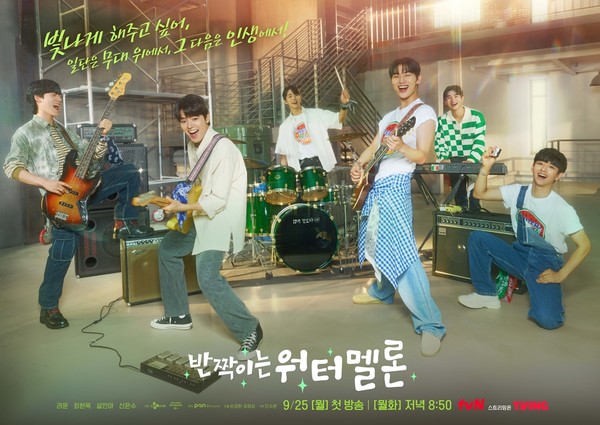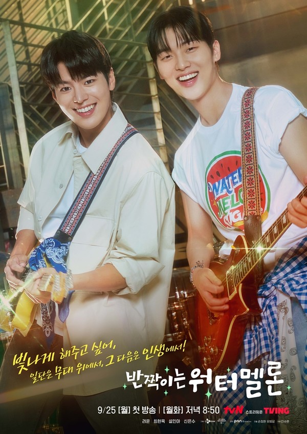 오는 25일(월) 첫 방송될 tvN 새 월화드라마 ‘반짝이는 워터멜론’(극본 진수완, 연출 손정현, 유범상, 기획 스튜디오드래곤, 제작 팬엔터테인먼트)이 첫사랑 기억 조작단의 합주 현장을 담은 듀오, 밴드 포스터로 보는 이들의 심장 BPM을 상승시키고 있다.