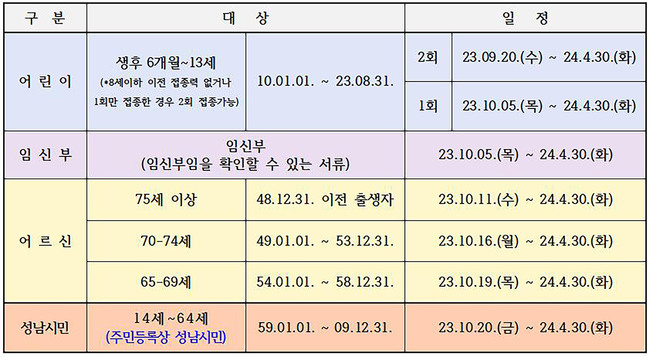 모든 시민 독감백신 무료 접종은 민선 8기 신상진 시장 공약사업으로, 경기도 31개 시군 중 성남시가 처음 시행한다.