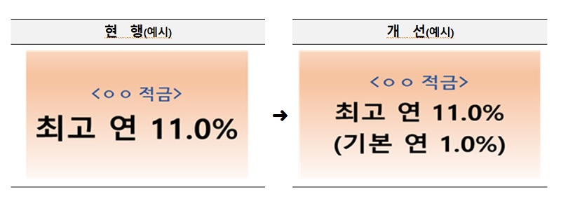 이에 따라 앞으로 금융상품판매업자는 예금성 상품 광고시 최고금리를 강조해 광고하는 경우 기본금리도 같이 표시해야 한다.