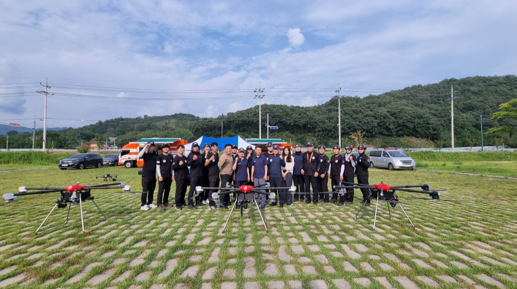 이날 훈련은 가상산불지역 선정하여 정찰용 드론으로 정확한 산불 위치를 파악 후 좌표값을 설정하고, 진화용 드론을 활용해 모의 진화탄을 발사하는 순서로 진행하였다.