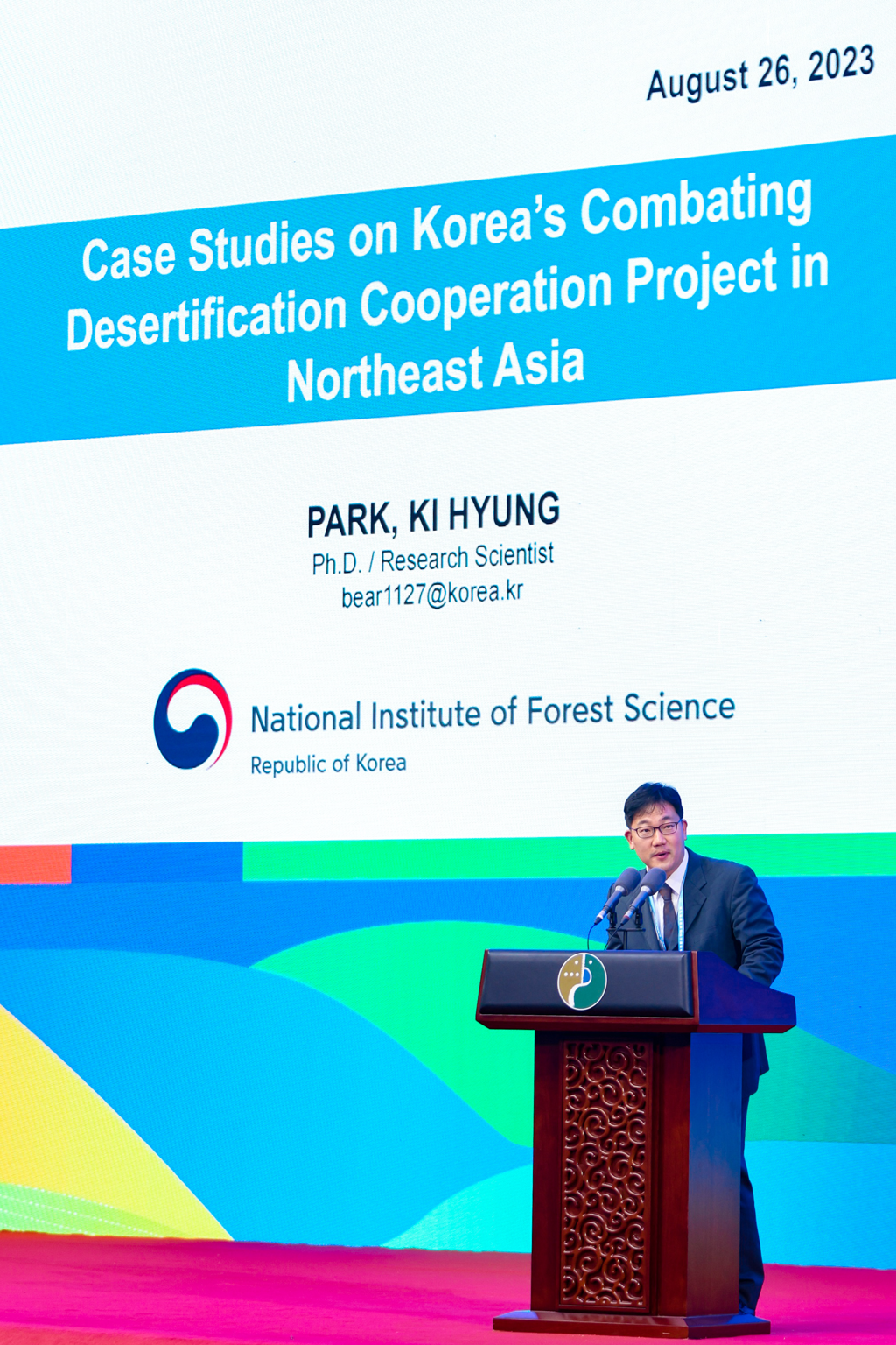 국립산림과학원 산림생태연구과 박기형 박사는 중국국가임업초원국의 초청으로 세션2 황사 예방 및 과학적 방지 파트에서 2000년 이후 추진된 한-중, 한-몽 사막화 방지 조림사업의 성과와 현지조사를 통한 조림 효과에 대해 발표했다.