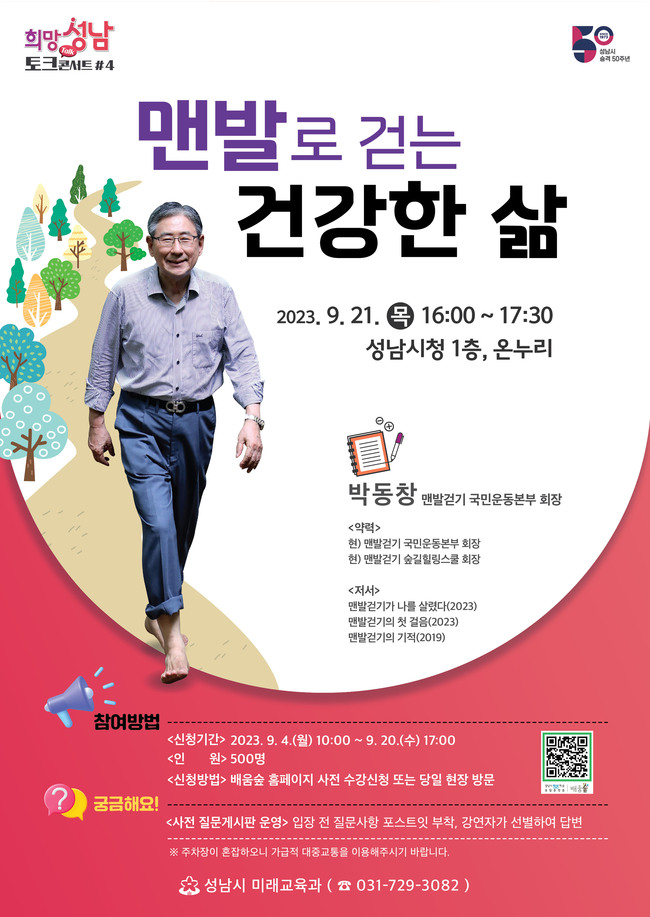 박 회장은 ‘맨발로 걷는 건강한 삶’을 주제로 강연을 펼친다.