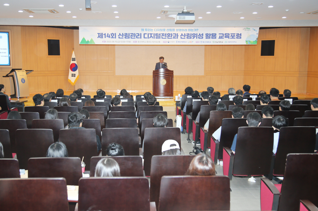 산림위성 교육토론회는 산림분야 공간정보 인재 양성을 위하여 2020년부터 매년 전국 산림관련 대학을 대상으로 개최하여 이번에 14회째를 맞았으며, 이번 토론회에서는 전남권역의 동신대학교, 전남대학교, 목포대학교 학생 및 대학원생을 대상으로 진행되었다.