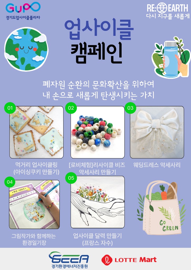 경기환경에너지진흥원(이하 진흥원)과 롯데마트가 10월 한 달 동안 안산, 고양, 시흥 등 도내 14개 롯데마트 내 문화센터에서 업사이클에 대한 도민 인식확산과 ESG(환경·사회·투명 경영) 실천을 위한 프로그램을 진행한다.