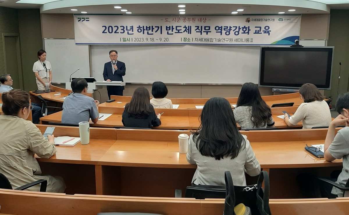 20일까지 3일간 차세대융합기술연구원 주관으로 열리는 이번 교육은 글로벌 반도체 시장 변화의 흐름을 읽고, 경기도가 첨단산업 구현의 필수재인 반도체 산업을 선도하기 위해 어떤 준비를 해야 할지를 고민해 보고자 마련됐다.