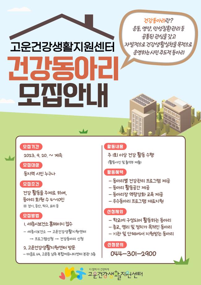 기타 자세한 사항은 고운건강생활지원센터(☎044-301-2911)로 문의하면 된다.