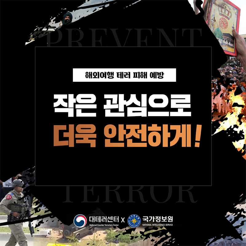 국조실 대테러센터는 “출국 전 방문국의 여행경보 발령현황과 테러 유형별 행동요령을 숙지해달라”고 거듭 강조했다.