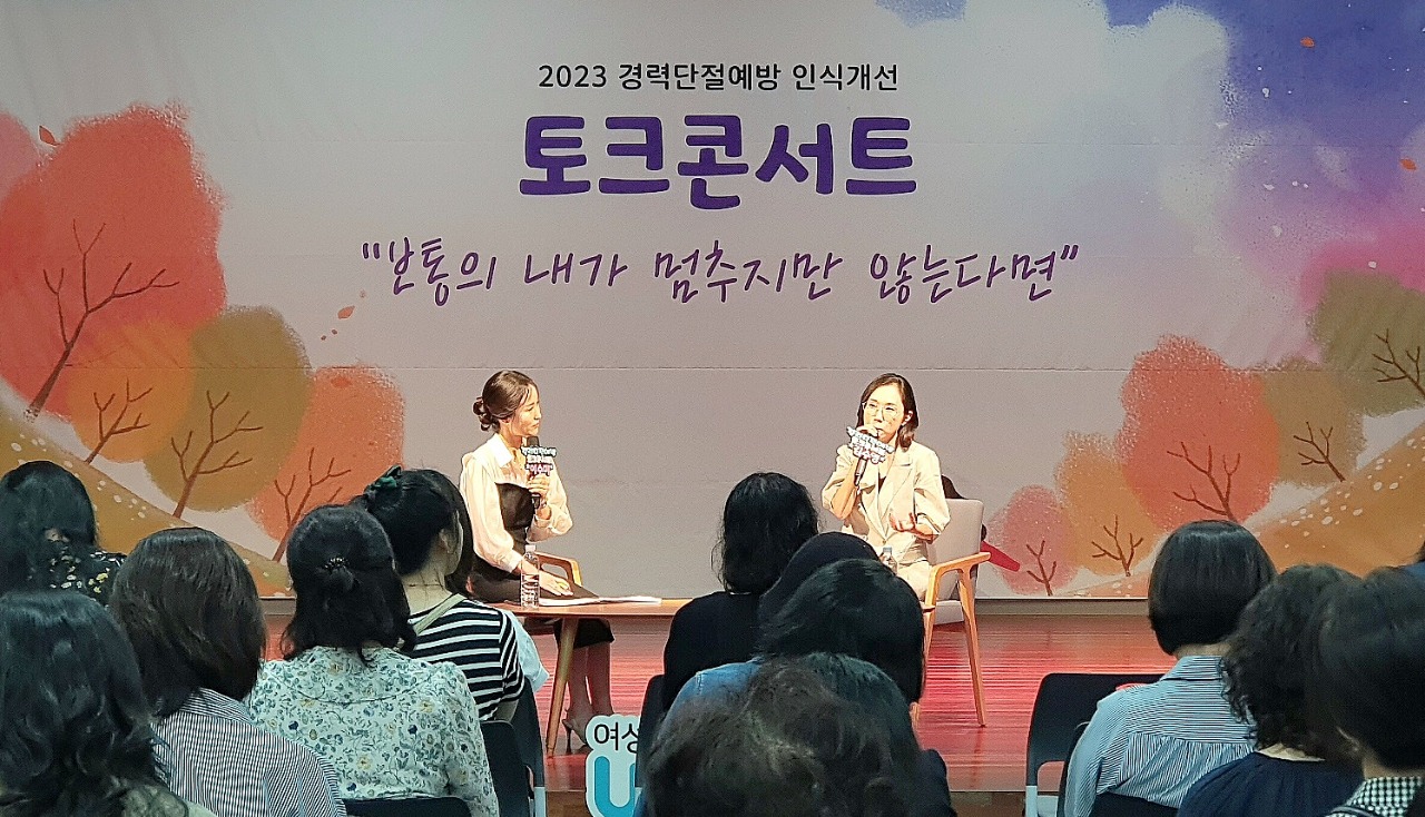 이번 토크콘서트는 경기도일자리재단이 운영하는 경기광역새일센터와 팔달새일센터가 함께 마련한 경력단절예방 인식개선 행사로 20일 수원시 팔달문화센터에서 진행됐다. 행사에는 결혼과 육아, 가사와 같은 다양한 이유로 경력단절을 경험한 여성과 일반 시민 50여 명이 참석했다.