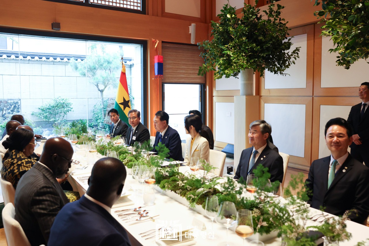 한편, 대통령은 이날 나나 아도 단콰 아쿠포아도 가나 대통령과 만나 “가나에 한국형 전자 통관시스템을 성공적으로 보급했고, 교통, 재무관리 등 다양한 분야에서 디지털 전환을 적극적으로 지원하고 있다”고 말했다.