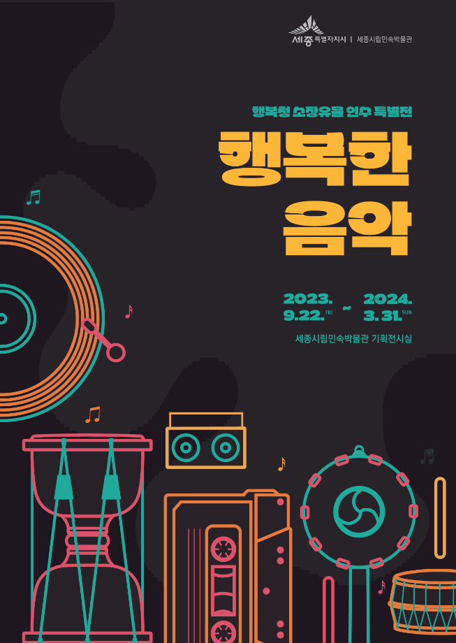 22일부터 내년 3월 31일까지 세종시립민속박물관에서 ‘행복한 음악’이라는 이름으로 열리는 이번 전시회에서는 행복청에서 수집하여 세종시로 이관된 유물 중 음악과 관련한 38점이 선을 보인다.