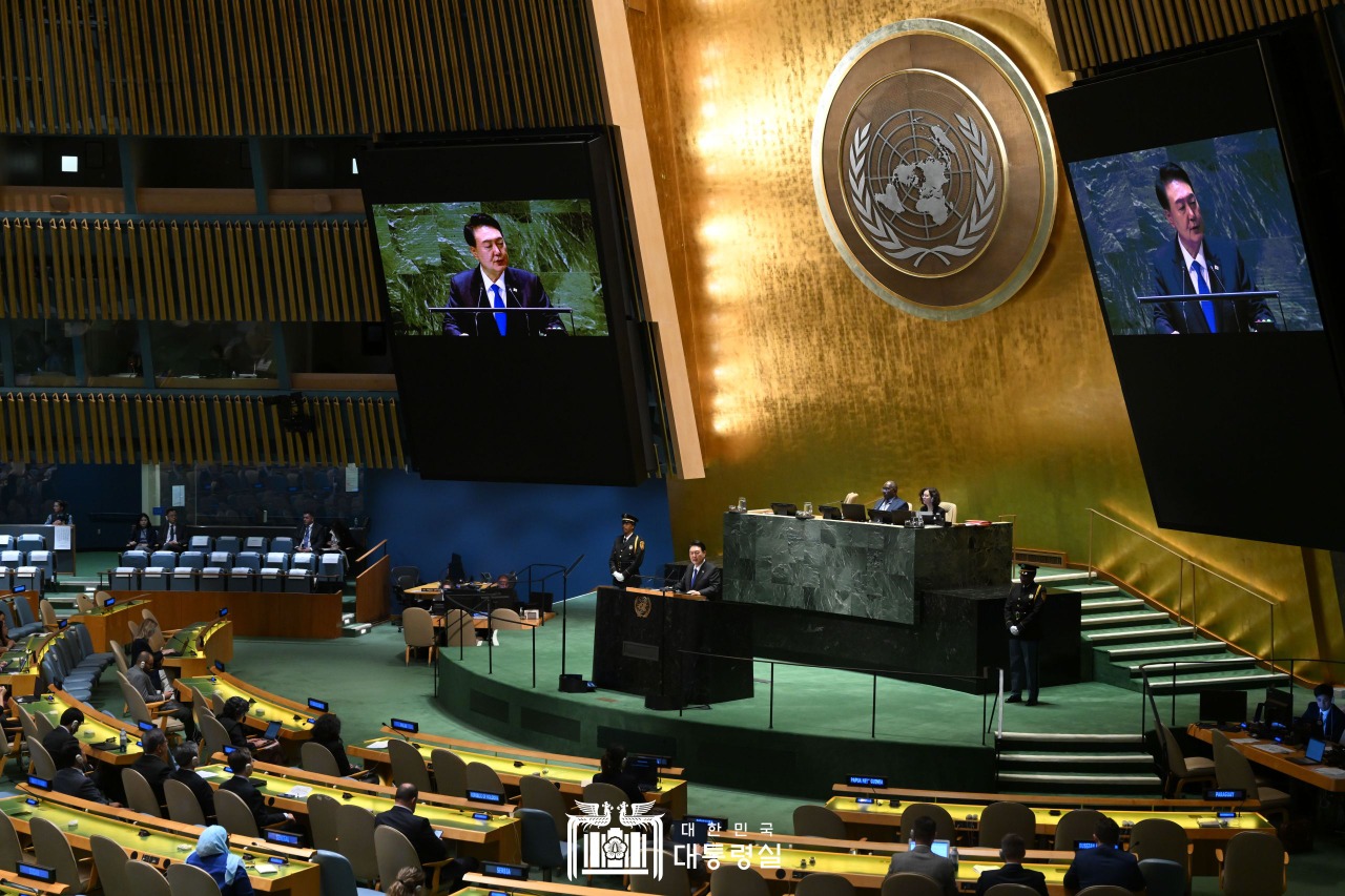 대통령은 “나라마다 군사력의 크기는 다르지만 모두 굳게 연대해 힘을 모을 때, 그리고 원칙에 입각해 일관되게 행동할 때 어떠한 불법적인 도발도 차단할 수 있다”며 “대한민국은 2024~25년 안보리 이사국으로서 세계 평화를 진작하고 구축하는 데 책임 있는 역할을 수행하겠다”고 강조했다.