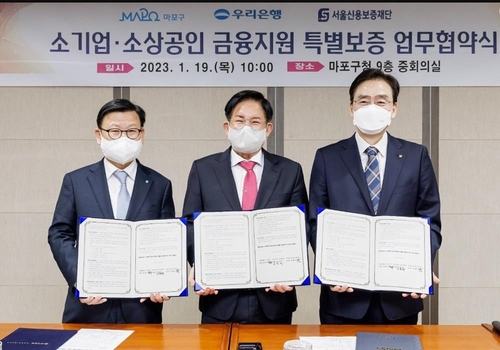 지난 1월 마포구는 관내 소기업과 소상공인에게 4년간 총 1천억 원의 자금을 지원하고자 우리은행, 신용보증재단과 3자 업무 협약을 체결하고, 매년 우리은행과 각각 10억 원씩 특별출연해 연간 출연금의 12.5배인 250억 원을 지원하기로 했다.