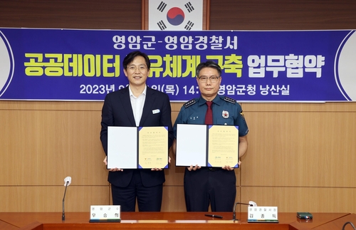 영암군(군수 우승희)이 21일 군청에서 영암경찰서(서장 김종득)와 '공공데이터 공유체계 구축 업무협약'을 맺었다.