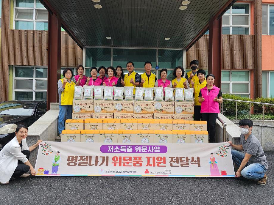 세종특별자치시 조치원읍 지역사회보장협의체가 민족의 대명절 한가위를 맞아 지난 20일부터 27일까지 후원자 위문품과 민관 특화 협력사업을 활용한 ‘이웃사랑 위문 사업’을 추진한다.
