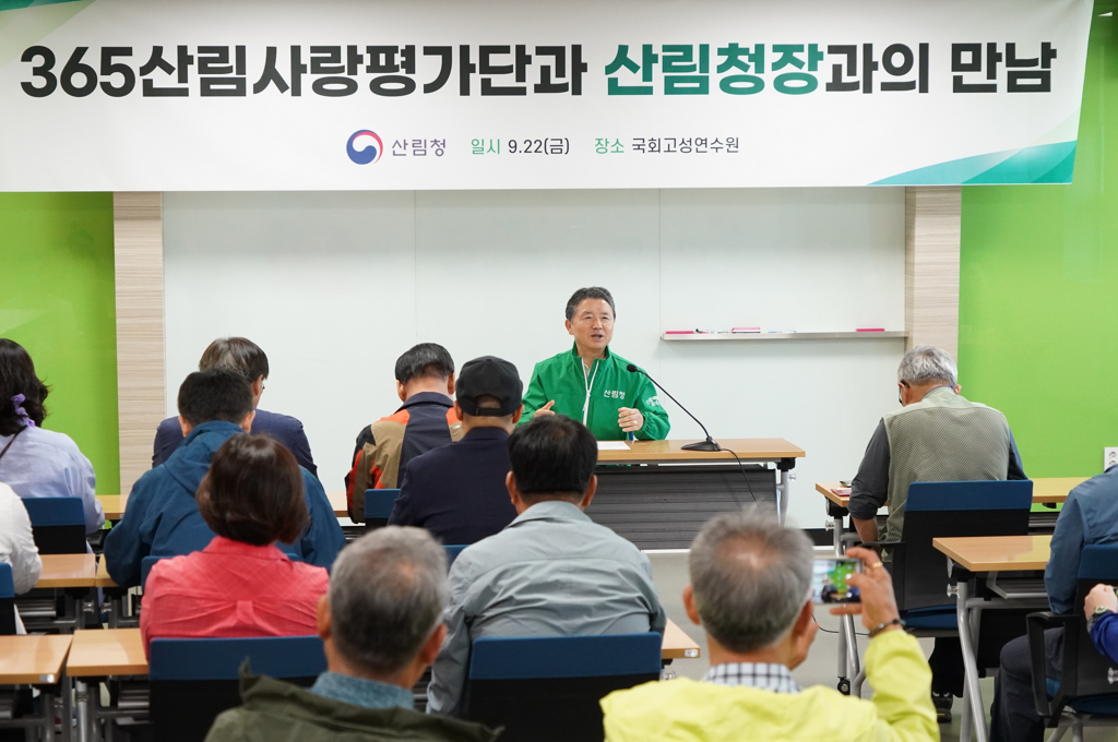 간담회에 앞서 30여 명의 365산림사랑평가단*은 산림엑스포 개장 하루 전인 21일 고성의 산림엑스포 행사장을 돌며 일반 관람객의 입장에서 개선이 필요한 사항을 세밀히 살펴 조직위원회에 전달하였다.