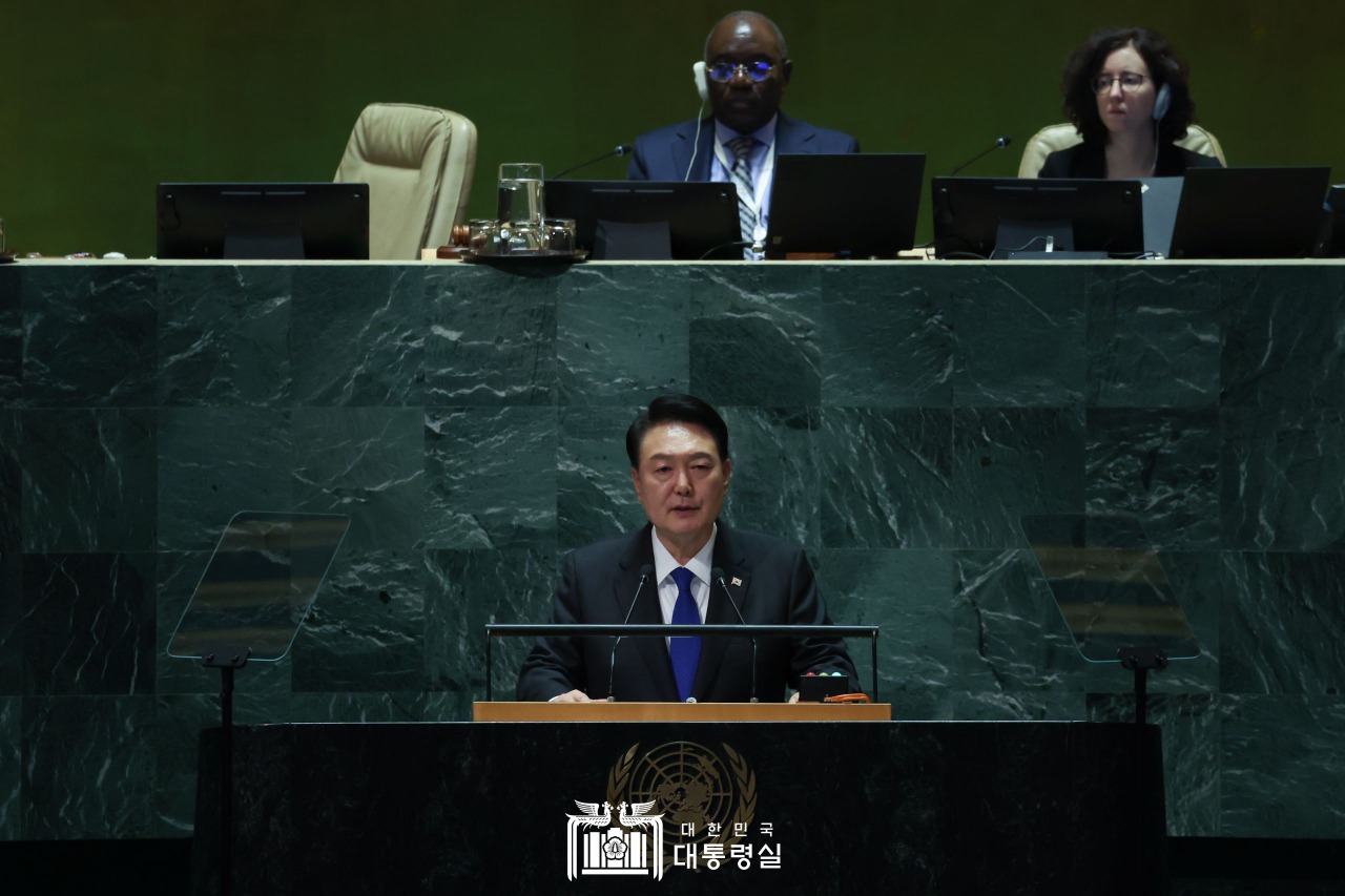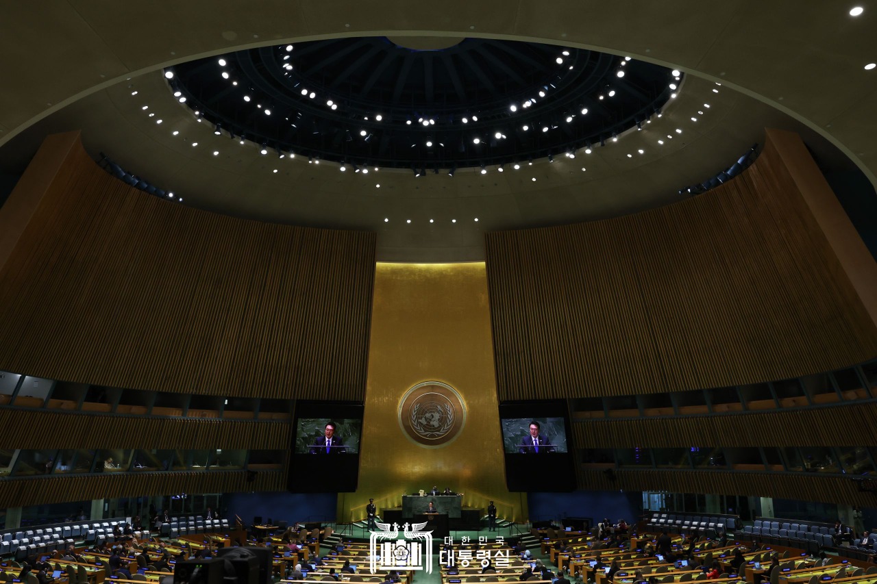 윤석열 대통령은 지난 20일(현지시간) 미국 뉴욕 유엔본부에서 열린 제78차 유엔총회 기조연설에서 “세계 모든 국가들이 상생해 나가기 위해서는 국제사회가 강력히 연대해야 하며, 유엔이 그 중심에 서야 한다”고 말했다. ‘상생과 연대’를 키워드로, 코로나 팬데믹, 공급망 불안정, 우크라이나 전쟁, 기후위기 등 전례 없는 복합 위기 속 국제사회의 책임있는 기여를 강조한 것이다.