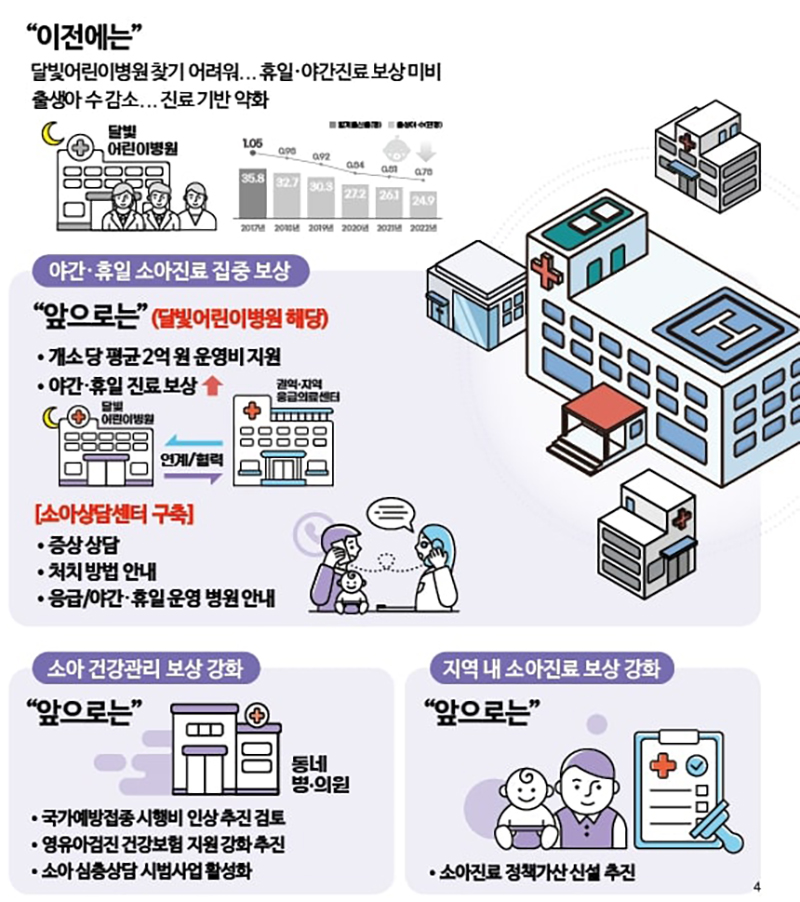 또한 중증 소아응급환자를 진료하는 소아전문응급의료센터와 야간과 휴일에 소아를 진료하는 ‘달빛어린이병원’을 확충하고 운영비도 인상해 지급할 계획이다.