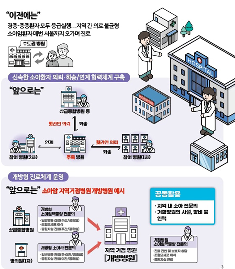 이밖에도 전국 5개 권역에 소아암 거점병원을 육성하고 안정적인 의료서비스 제공에 필요한 의료인력 확보와 지역 내 의료인력 활용을 지원한다.