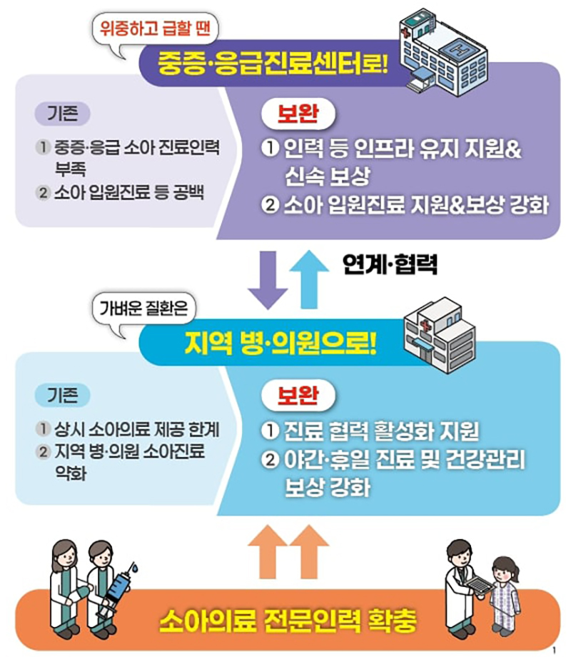 권역별 거점병원의 전문의와 지역사회 소아 전문의 간 개방형 진료체계 운영 등 인력 공동활용 활성화에 필요한 제도적 보완도 추진한다.
