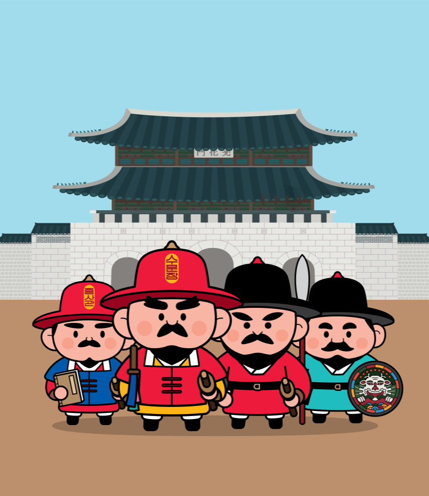 문화재청 궁능유적본부는 한국문화재재단과 경복궁 수문장 교대의식 캐릭터 4종(수문장, 종사관, 갑사, 대졸)을 새롭게 개발했다.