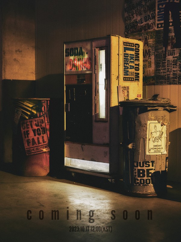 공개된 커밍순 이미지에는 덤프통과 자판기, 벽에 붙어있는 포스터들이 빈티지한 무드를 물씬 풍기고 있다. 여기에 차갑고 거친 분위기 속 어두운 공간에 노란 불빛이 따뜻한 감성을 더하고 있어 새 앨범 콘셉트에 대한 궁금증을 자극한다.