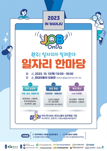 오는 10월 12일 완주군 봉동읍 소재 현대자동차 인화관(체육관)에서 '2023 완주 일자리 한마당'이 열린다.