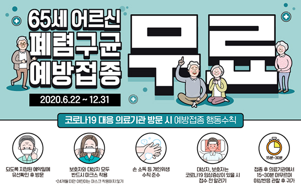 이에 따라 질병관리본부는 노인 건강보호와 코로나19에 의한 중증 폐렴 예방 등을 위해 22일부터 어르신 폐렴구균 예방접종을 민간 병·의원(지정 의료기관)까지 확대 시행한다고 밝혔다.