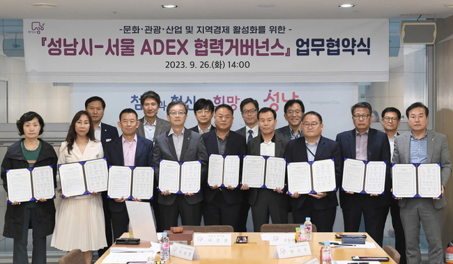 시는 9 월 26 일 오후 2 시 시청 4 층 회의실에서 ‘ 성남시 - 서울 ADEX 협력 거버넌스 ( 이하 아덱스 민 · 관 협력체 ) 구성 · 운영에 관한 업무협약 ’ 을 했다.