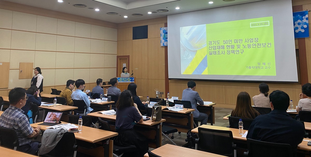 경기도는 26일 경기도경제과학진흥원에서 가톨릭대 산학협력단 주관으로 안전보건공단, 노동단체, 근로자건강센터 등 노동자 안전과 관련한 단체들이 참석한 가운데 ‘경기도 50인 미만 사업장 산재 예방대책 모색을 위한 토론회’를 개최했다.