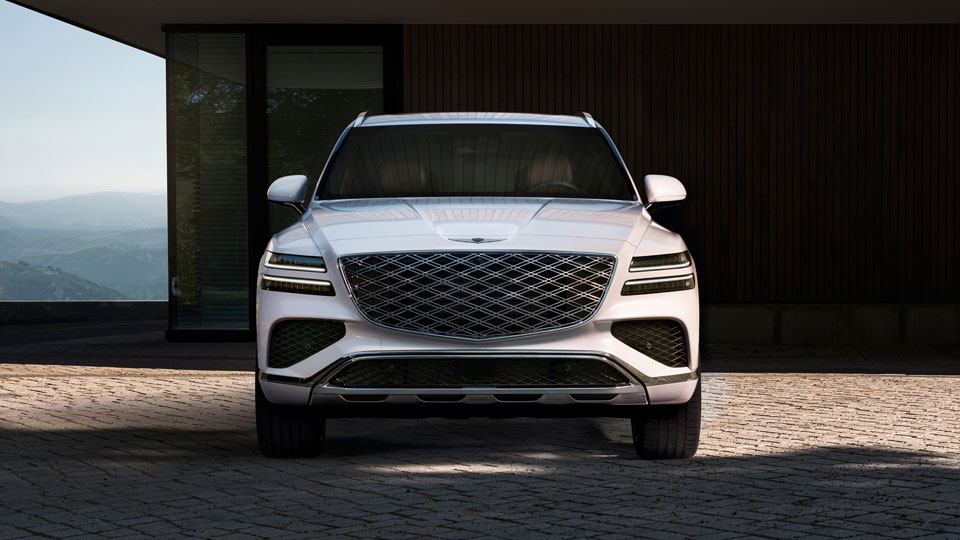 전면부 헤드램프에는 GV80와 마찬가지로 MLA(Micro Lens Array) 타입 LED 램프가 적용된다. 크레스트 그릴에는 ‘더블 레이어드 지-매트릭스(Double Layered G-Matrix)’ 패턴의 라디에이터 그릴을 적용함으로써 고성능 이미지를 강조했다.