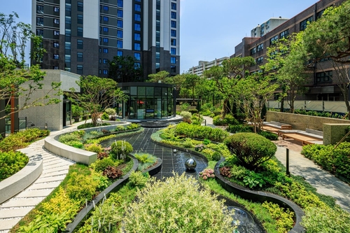 또한, '신반포 르엘'에 적용된 조경 상품인 '웨이브폰드'는 단지 중앙에 위치한 곡선이 아름다운 연못과 꽃나무들로 꾸민 수경시설이다.