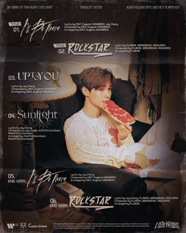 제이창은 3일 0시 공식 SNS를 통해 첫 번째 미니앨범 'Late Night(레이트 나이트)'의 트랙리스트 이미지를 공개했다.
