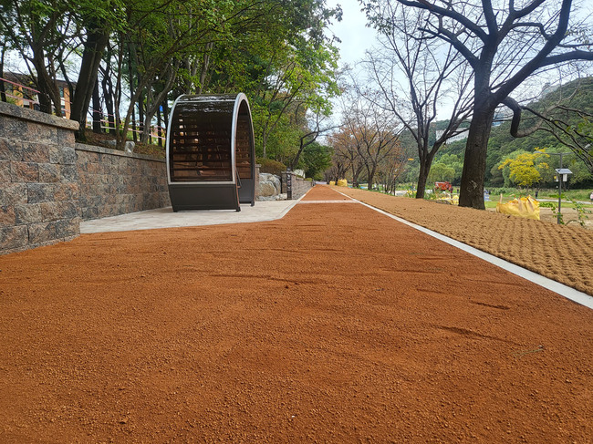 시는 구미교 인근부터 불곡중·고교 앞까지 이어지는 탄천 공공공지에 황토를 20㎝ 두께로 깔아 일직선 형태의 황톳길을 냈다.