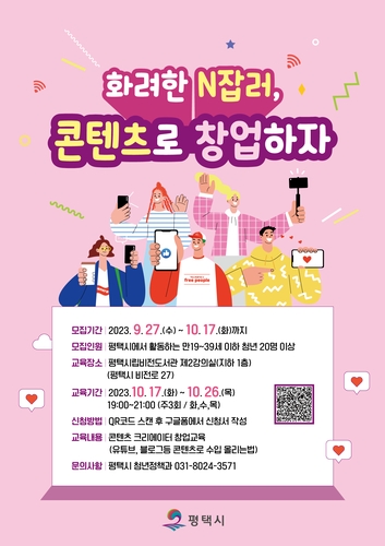 평택시는 오는 17일부터 26일까지 관내 19∼39세 청년 20명을 대상으로 콘텐츠 창작자(크리에이터) 창업 지원 교육을 진행한다고 밝혔다.