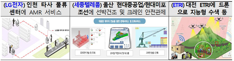 이에 따라 물류 현장에서의 수십 대의 로봇 동시 제어와 조선소의 공정 및 안전관리에 이음5G 융합서비스를 활용할 수 있을 것으로 기대된다.