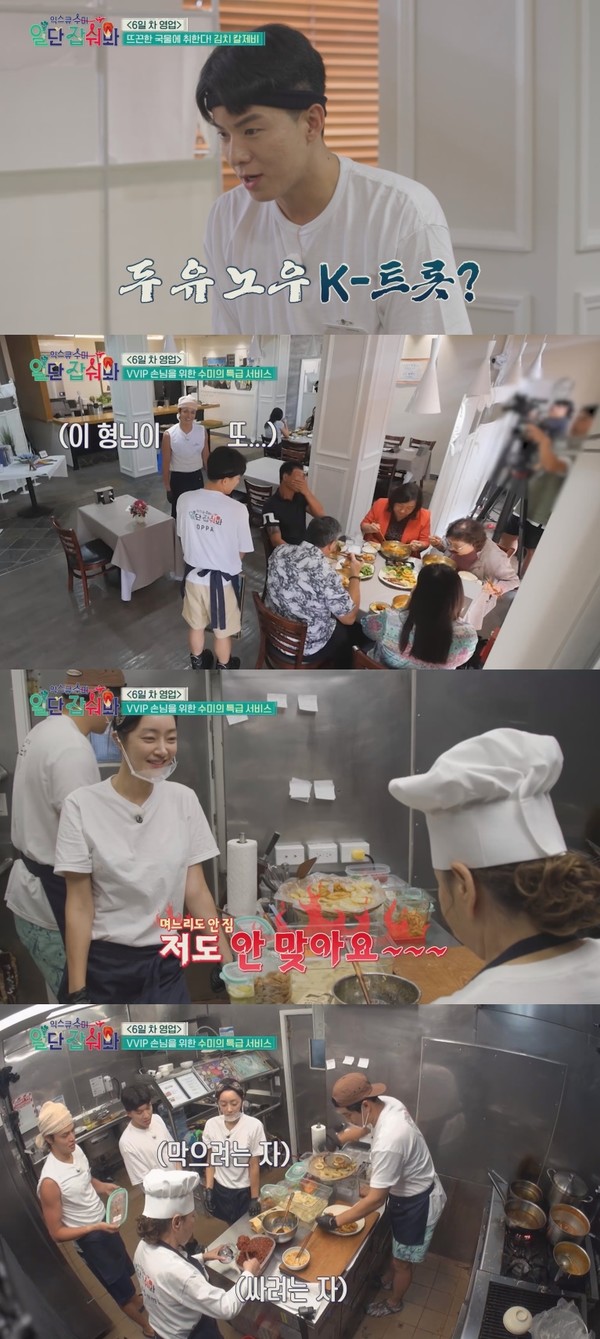 이날 수미 한식당에는 김수미의 30년지기 괌 절친들이 방문한다. 오랜만에 만나는 지인들이 반가운 나머지 김수미는 반찬을 싸주겠다며 냉장고를 털고 이를 본 서효림이 급하게 막아서면서 고부 전쟁의 막이 오른다.