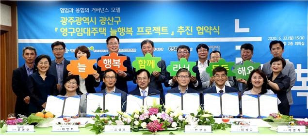 LH는 지난 22일 광주 광산구청에서 영구임대주택 입주민 삶의 질 향상 및 공동체 활성화를 위한 ‘영구임대 늘행복 프로젝트’ 협약을 체결했다고 23일 밝혔다.