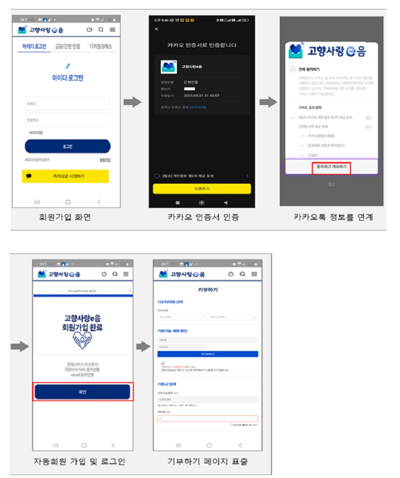 6일 오전 10시부터 카카오톡을 통한 고향사랑기부제 정보시스템인 ‘고향사랑 e음’의 회원가입과 로그인이 가능해진다.