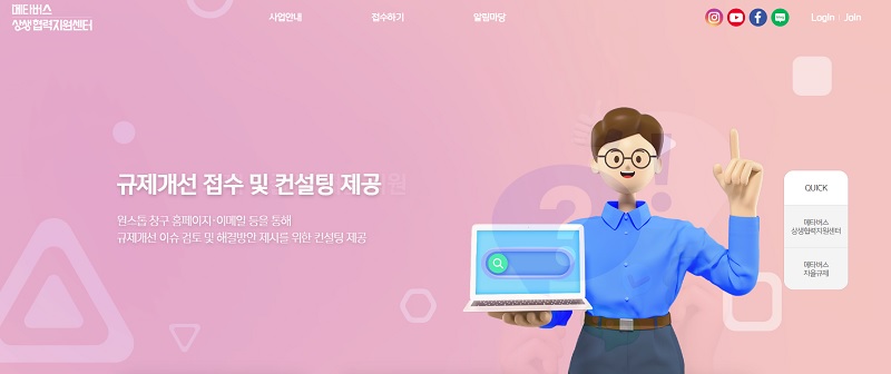 메타버스 분야 기업 등은 메타버스 원스톱 창구 홈페이지( https://metawinwin.or.kr/1stop/main.php )를 통해 온라인으로 메타버스 관련 규제애로 건의사항 등을 상시 신청할 수 있다.