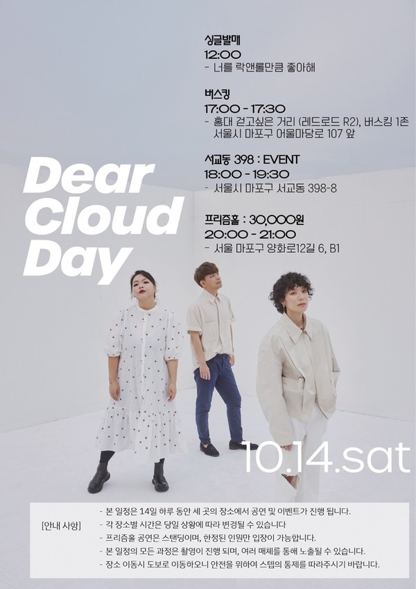 이날 디어클라우드는 새 싱글 발매를 기념해 버스킹 공연, 팬 사인회, 클럽 공연 등 다양한 장소에서 다채로운 이벤트로 팬들과 만날 계획이다.