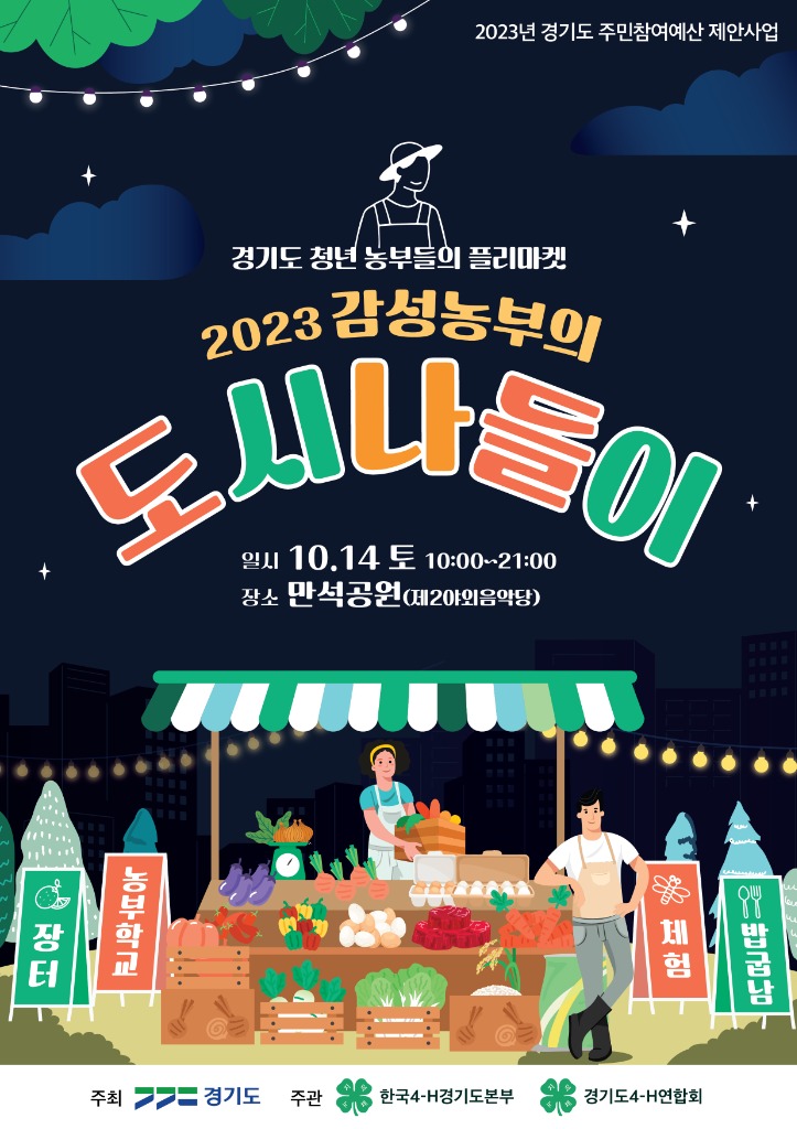 경기도가 14일 수원 만석공원 제2야외음악당 광장에서 청년농업인 장터 ‘감성농부의 도시 나들이’를 개최한다.