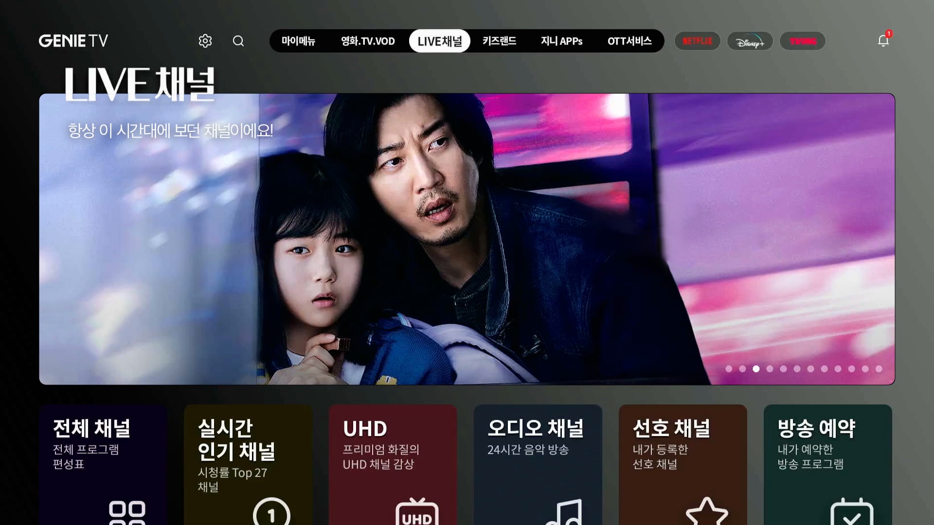 작년 10월 KT는 IPTV 서비스명을 ‘올레 tv’에서 ‘지니 TV’로 변경하고, OTT와 유튜브를 비롯해 LIVE채널(TV실시간채널), 주문형 비디오(VOD), 키즈·뮤직 등 모든 콘텐츠를 한 플랫폼에서 편리하게 이용하는 새로운 UI(User Interface)인 ‘미디어 포털’로 서비스를 전면 개편했다. 이날 KT는 기자간담회를 열어 ‘원하는 콘텐츠를 알아서 딱’이라는 슬로건을 내걸고 지니 TV로 새로운 홈 미디어 시대를 열겠다고 선언한 바 있다.