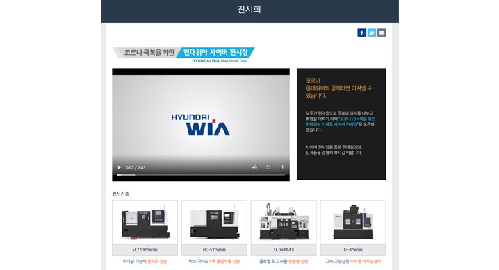 현대위아는 공작기계 홈페이지 내 ‘사이버 전시장’을 오픈하고 소형 수평 선반 SE2200시리즈와 머시닝센터 KF시리즈 등 총 33종의 공작기계 신제품을 출시한다고 24일 밝혔다. 정밀성과 강성 등 성능을 대폭 높이는 동시에 경제적인 가격의 신제품을 대거 출시해 국내 공작기계 시장 1위의 자리를 사수하겠다는 전략이다. 현대위아는 코로나19로 대면 마케팅 활동이 어려운 상황을 고려해 국내 공작기계 업체 중 최초로 사이버 전시장을 통해 신제품을 공개했다.