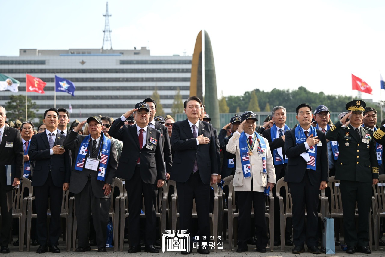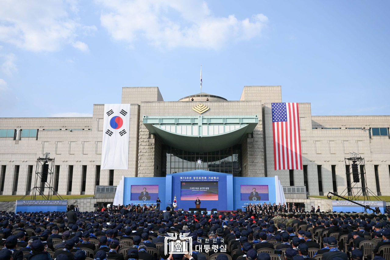 윤석열 대통령은 12일 오후 전쟁기념관 평화의 광장에서 열린 ‘제73주년 장진호 전투 기념행사’에 참석했다.