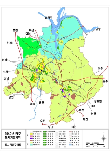 광주시는 인구가 지속적으로 늘어나는 성장형 도시로 2040까지 계획인구를 52만5천명으로 설정했으며 무한한 잠재력을 지닌 만큼 도시의 양적 성장에서 벗어나 자족 기능을 도모할 수 있는 장기 발전 방향을 제시했다.