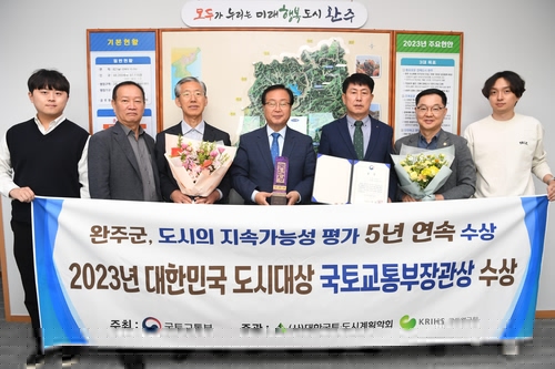 완주군은 국토교통부에서 지난 17일 주최한 '2023년 대한민국 도시대상' 시상식에서 도시환경 분야 국토교통부 장관상을 수상했다.
