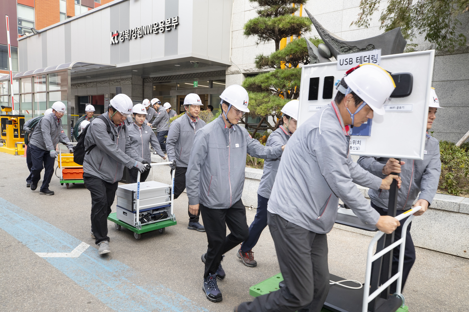 KT가 18일 KT 혜화국사에서 군·경 등 유관 기관과 함께 국가핵심 통신망 시설의 방호태세를 점검하는 실전 긴급복구 훈련을 실시했다고 19일 밝혔다.