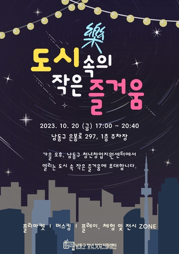 인천시 남동구 청년창업지원센터는 오는 20일 오후 4시부터 8시 30분까지 논현LH16단지 내 1층 주차장에서 약 20개 청년 기업이 참여하는 '청년창업기획전, 도시락(樂)'을 개최한다고 19일 밝혔다.