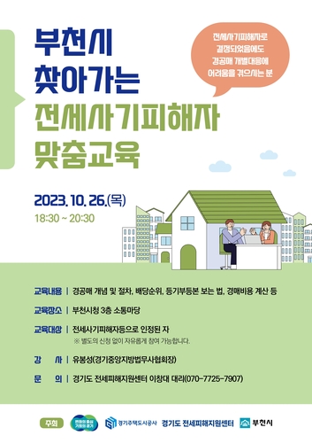 경기도 전세피해지원센터는 오는 26일 경기도 부천시에서 '현장으로 찾아가는 전세사기피해자 맞춤교육'을 처음으로 진행한다고 19일 밝혔다.