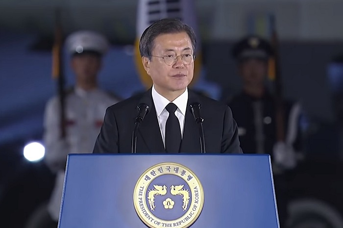 문재인 대통령은 25일 오후 8시 20분 국가보훈처 주최로 경기도 성남 서울공항 격납고에서 열린 6·25전쟁 제70주년 행사에 참석했다.
